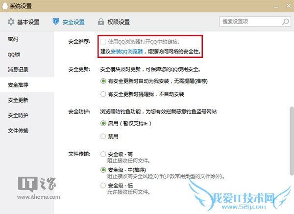 ▲QQ7.6正式版“系统设置”的QQ浏览器推荐
