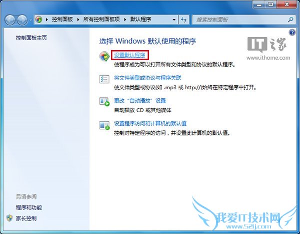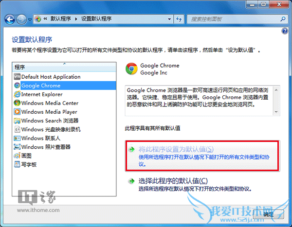 ▲在左边列表选择想要使用的程序,然后点击“将此程序设为默认值”