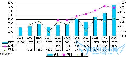 阿里集团第四季度营收成本75.20亿元(约12.12亿美元),去年同期为41.71亿元,同比增长80%,其主要是由于股权奖励开支增加、与新业务拓展相关成本增加、因零售市场上交易总额增加导致的支付处理费用增长等。