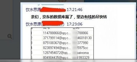 一张截图在QQ群里疯传,并说明京东数据库泄露,里面有钱的尽快转。我挨个试了一下,只有3个可以正常登陆,而且网上也并没有完整的数据库流出,所以我妄猜是否是支付宝或者是其他竞争对手的营销手段?