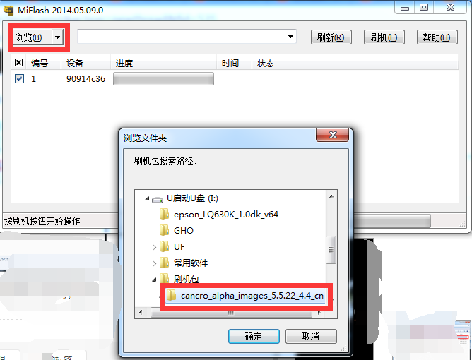 接着点击"浏览"按钮,选择解压好的刷机包路径: