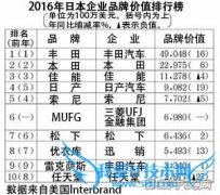 美国大型品牌咨询公司Interbrand于2月17日发布了2016年版的日本企业全球品牌价值排行榜。丰田汽车的“丰田”连续8年位居首位。海外销售额比率达到30%以上的三菱UFJ金...