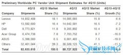 市场研究公司Gartner公布的最新数据显示,2013年第四季度全球PC出货量下降至8260万台,同比下降6.9%,连续第7个季度滑坡。2013年全年,全球PC出货量为3.159亿台,同...