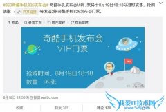 欢迎您访问我爱IT技术网,今天小编为你分享的是新闻资讯是:【奇酷手机发布会门票今晚微信开卖售价99元还要抢购】,下面是详细的分享!奇酷手机发布会门票今晚微信开...