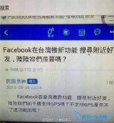 欢迎您访问我爱IT技术网,今天小编为你分享的是新闻资讯是:【FB台湾增附近好友功能台网友:大陆手机没有GPS用不了哦】,下面是详细的分享!FB台湾增附近好友功能台...