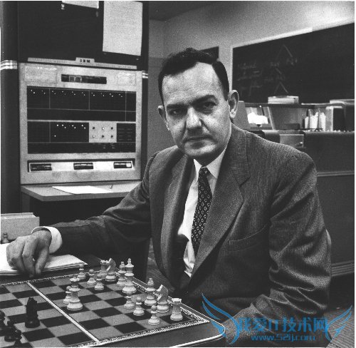 信息论的创始人克劳德·香农(Claude Shannon)被麦卡锡拉大旗做虎皮也请到会上打酱油。其实麦卡锡和香农的观点并不一致,平日相处也不睦。香农的硕士、博士论文都是讲怎么实现布尔代数,当时MIT校长布什(Bush)亲自指导。博士毕业后他去了普林斯顿高等研究院,曾和数学家外尔(Weyl)、爱因斯坦、哥德尔等共事,战争中,他一直在贝尔实验室做密码学的工作,图灵在1943年曾秘访美国,和同行交流破解德国密码的经验,其间和香农曾有会晤,一起聊过通用图灵机。战后香农去英国还回访过图灵,一起讨论过计算机下棋。香农内向,从没说过这段往事,直到1982年接受一次采访时才提起。1950年香农在《科学美国人》发表过一篇讲计算机下棋的文章。香农比其他几位年长十岁左右,当时已是贝尔实验室的大佬。