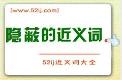 52ij近义词大全提供[隐蔽的近义词]隐瞒,埋没,障翳,暗藏,潜匿,隐秘,荫藏,掩盖,藏匿,潜藏,潜伏,隐藏,荫蔽,湮没,除此之外,还备注了[隐蔽]的拼音、意思及...