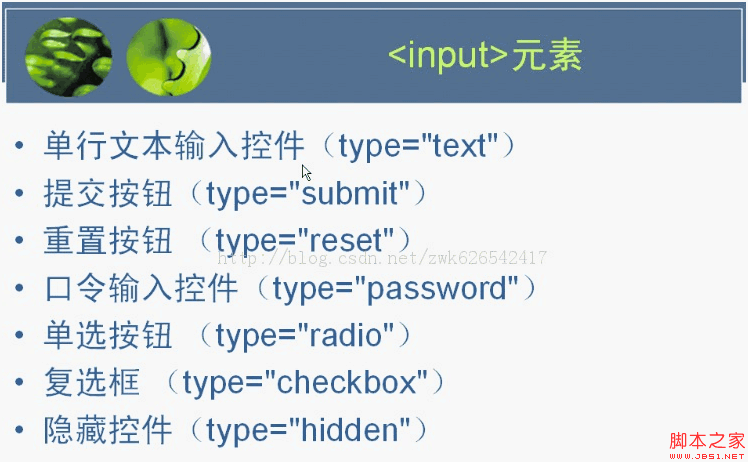 属性type用来指定要创建的控件的类型,属性那么用来指定控件的名称,size用来指定表单中控件的初始宽度,属性value指定控件的初始值。