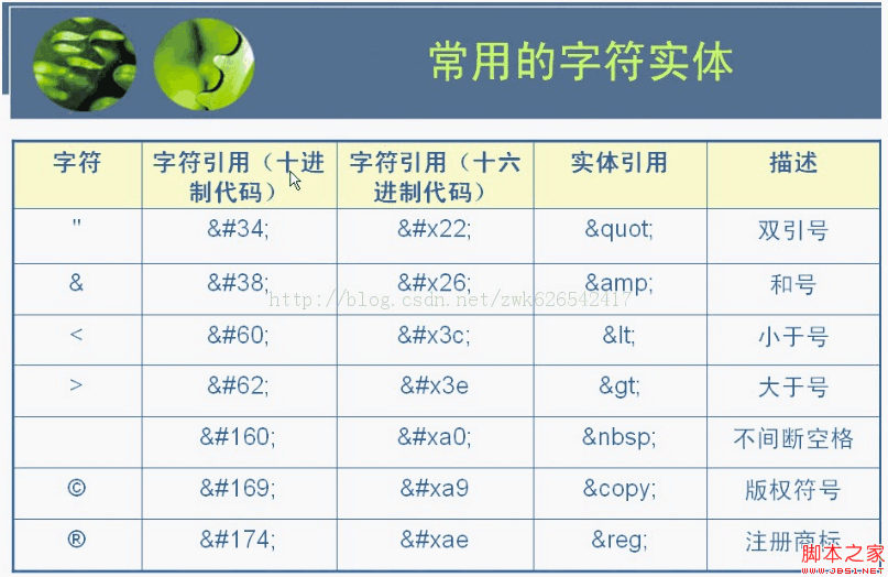 特殊字符包括字符引用和实体引用,下面我们将常用的进行总结
