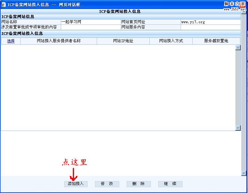 第十一步:在这里可以看到你填入的“接入服务提供者”、“网站IP地址、“接入方式”和“服务器放置地”,核对无误后点继续进入下一步,如下图所示: