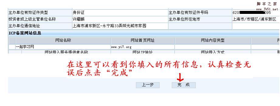 第十步:这一步非常重要,这一步填写的信息是否准确决定着备案的第一步能否通过,所以这一步填写的信息必须准确;填写完毕后点“提交”进入下一步: