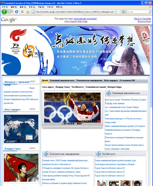 图三:谷歌翻译小工具把 http://2008sanya.tianya.cn/中文网页翻译成俄文