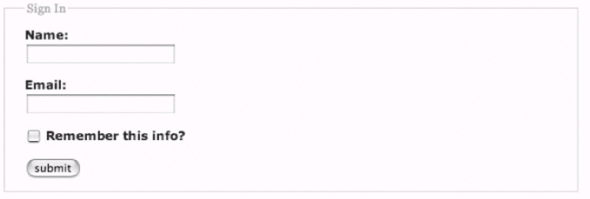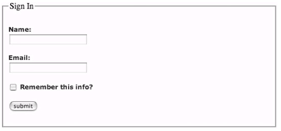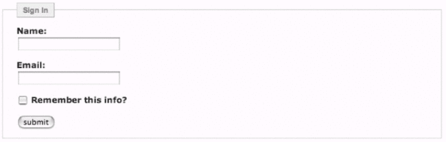 使用<fieldset>是个为表单元素分组的便利方法.除此之外,加上叙述用的<legend>则会在大多数浏览器内,为你做好的表单元素群组加上一个漂亮的边框.我刚刚有说"漂亮"吗?嗯,我的确喜欢这种边框.而我们只需要用上一点CSS,就能使它变得更加迷人.