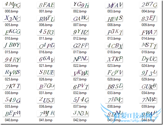 样本对于计算机来说是非常重要的,因为计算机很难有逻辑思维,就算有逻辑思维也要经过长期训练才能让你满意。所以要用事先制作好的样本进行比较。如果你仔细观察过这些验证码会发现一个bug,几乎大部分的验证码都是使用同样的字体,于是乎就人工制作了一套字体的样本。由于上一步已经有去除背景噪音的结果,可以直接利用。制作样本这一步有点简单枯燥,还需要细心。可能因为你的一个不细心会导致某个符号的识别率偏低。在这500个样本中,只发现了31个字符。幸亏是某部门的某人员还考虑到了易错的字符,例如,1和I,0和O等。要不然这个某部门要背负更多的骂名。