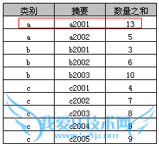 select 类别, 摘要, sum(数量) AS 数量之和 from A group by 类别, 摘要