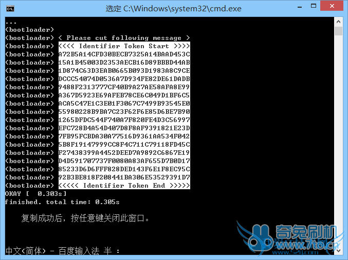 至此HTC M8Sw (One E8 联通版)手动解锁Bootloader图文教程完成。还没有学会怎么对HTC M8Sw (One E8 联通版)进行解锁的机友可以试试上面奇兔刷机小编给大家分享的这篇HTC M8Sw (One E8 联通版)手动解锁Bootloader图文教程。