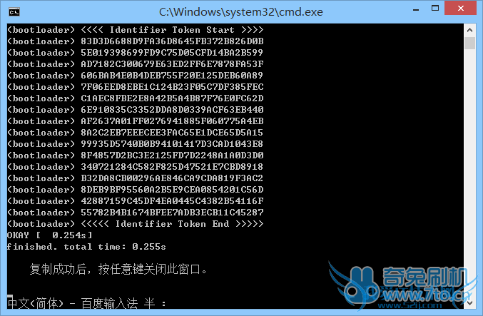 至此HTC 802t (One移动版)手动解锁Bootloader图文教程完成。还没有学会怎么对HTC 802t (One移动版)进行解锁的机友可以试试上面奇兔刷机小编给大家分享的这篇HTC 802t (One移动版)手动解锁Bootloader图文教程。