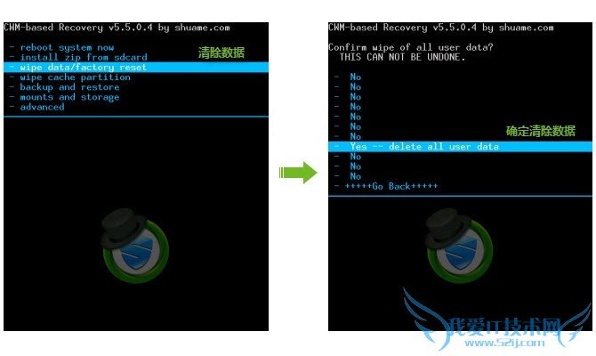 成功进入 Recovery 模式后,根据下图所选择项目进行操作!