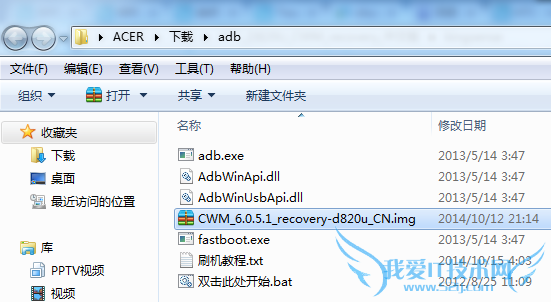2、把刚才下载的HTC D820u Recovery工具解压,然后再把里面的 .img 格式的文件放到HTC D820u adb工具的文件夹当中。