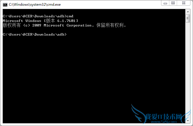 5、在打开的命令行窗口中输入下面的命令并回车执行该命令,把手机重启到 fastboot usb 模式。