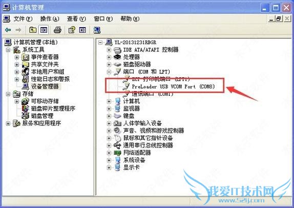 3、在设备管理端口会出现PreLoader USB VCOM Port(COM8),如该处出现黄色感叹号,即是驱动没安装, 此时可右键该设备选择“更新驱动程序”,选择安装下载的驱动程序即可。(注意:该端口出现时间较短,请及时点击安装驱动)