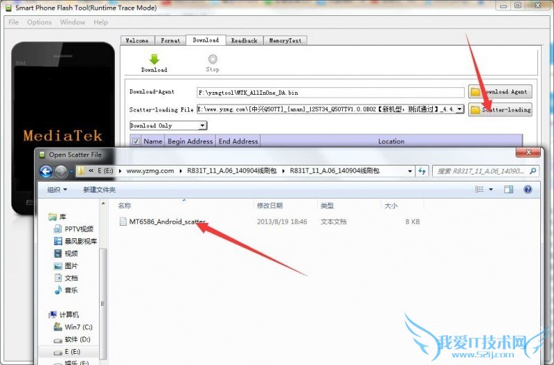 3.打开下载的刷机工具,选择“Scatter-loading”,再选择线刷包里的MT文件,如图