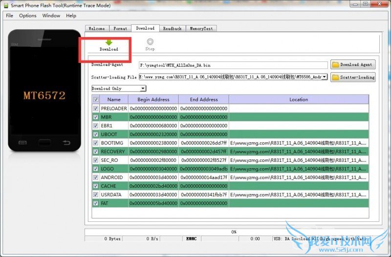 4.然后点击“Download”,再把手机连接到电脑,接下来等待自动刷机,出现绿色圆圈就说明成功了