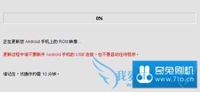 9:将显示一条确认信息,表明在 Android 手机上安装必要文件 (包括无线电通讯模块映像) 所需时间。单击下一步开始更新。更新过程中,屏幕上会显示不停变化的进度条。