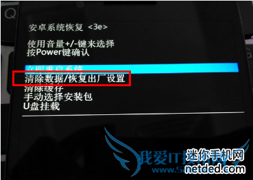 3:用音量键选择【清除数据/恢复出厂设置】然后再选择【是的-清除所有数据】然后按电源键确认