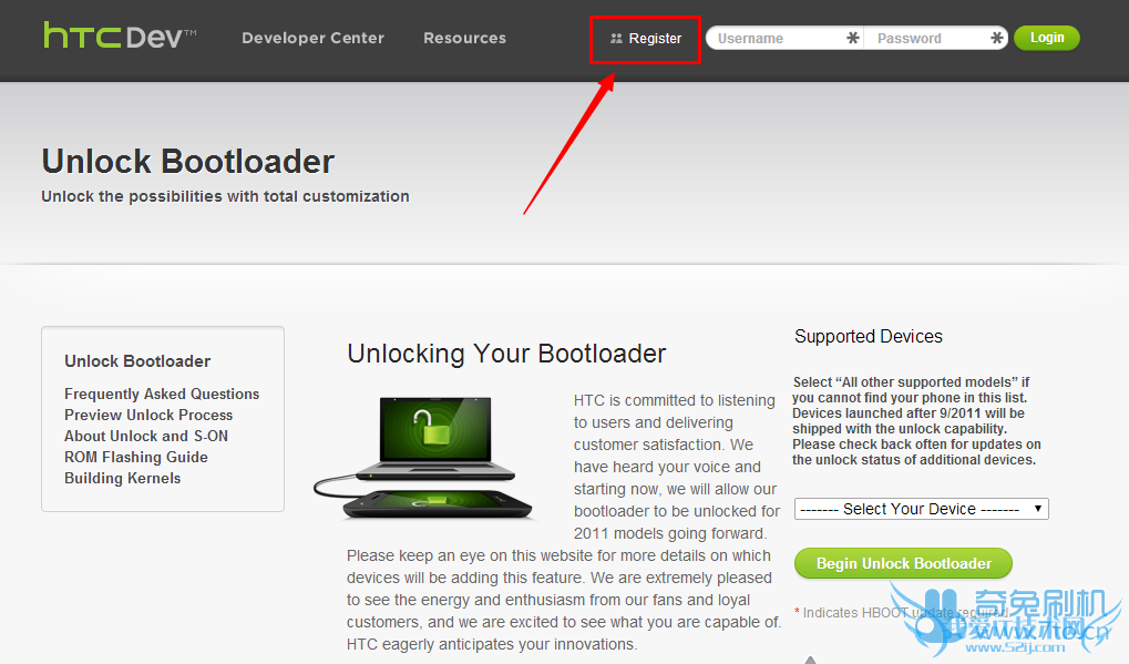 打开:http://www.htcdev.com/bootloader,点击【Register】