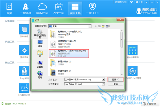 弹出页面选择【HTC T328w(新渴望V)官方recovery.img】文件点击“打开”