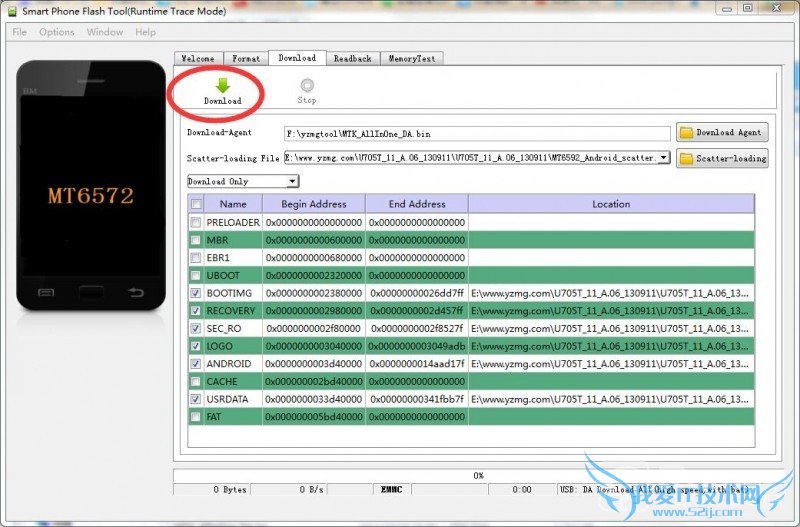 4.然后点击“Download”,再把手机连接到电脑,接下来等待自动刷机,出现绿色圆圈就说明成功了