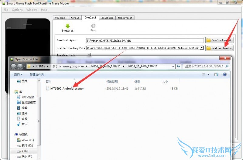 3.打开下载的刷机工具,选择“Scatter-loading”,再选择线刷包里的MT文件,如图
