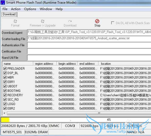 开始线刷机。点击Flash_tool.exe,进入后点击菜单栏options选项,在弹出的下拉栏菜单里面选择USB mode勾选点击右上角第二项Scatter-loading,选择所要刷的固件包里面的MT6577_Android_scatter_emmc.txt