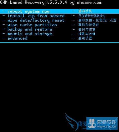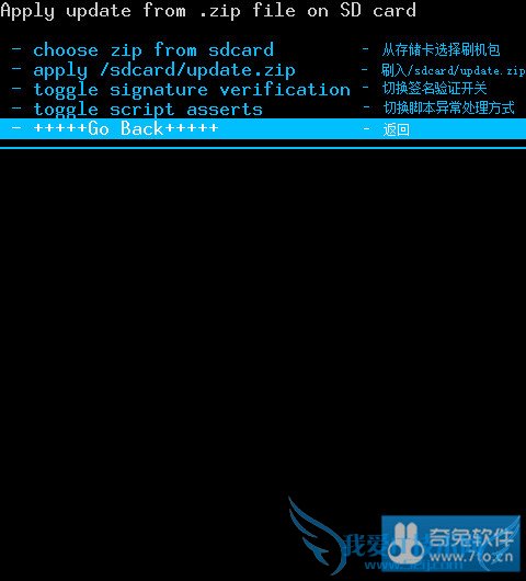 第二行:install zip from sdcard - 从存储卡安装刷机包