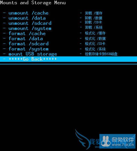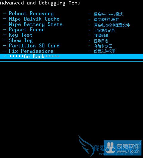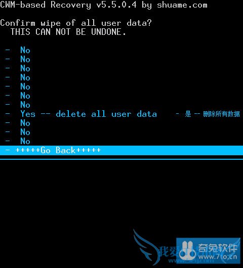 第三行:wipe data/factory reset - 清除数据、恢复出厂设置