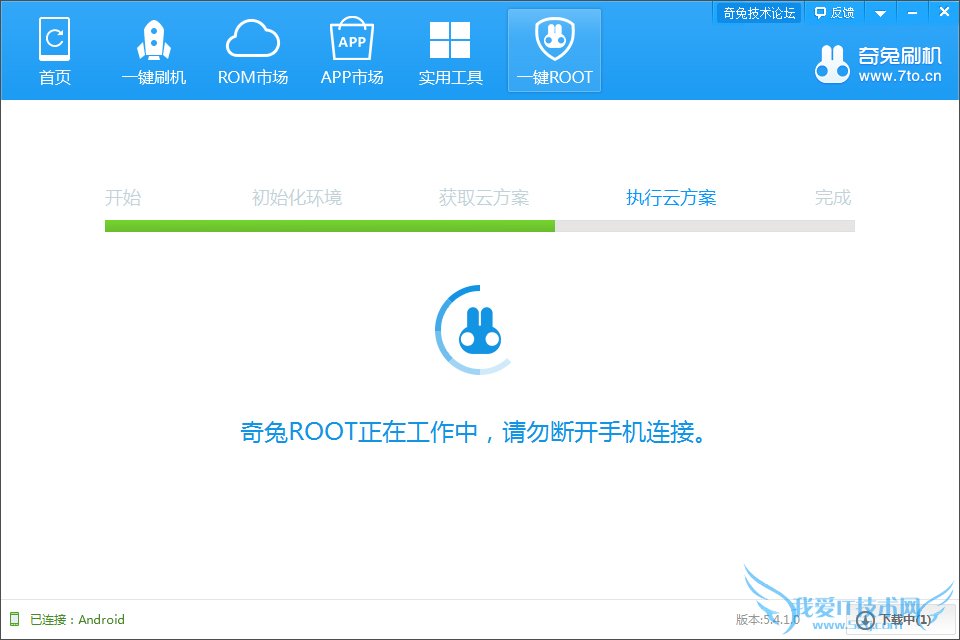 3.耐心等待3-5分钟,在这期间务必保证手机的正常连接,剩下的事情奇兔一键ROOT会帮你完成!