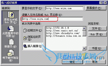 (3) 我们可以输入一个超级链接,也可以单击“浏览”按钮,选择合适的超级链接;