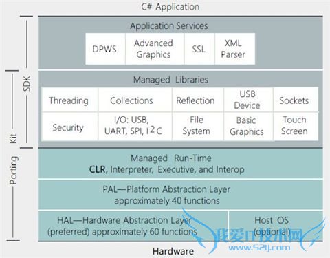 作为.NET家族的一名新成员,.Net Micro Framework是微软专门针对超轻量级平台(主要是一些低端的32位微处理器)设计的软件架构。其结构如图1:
