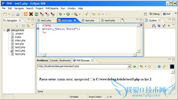 在 “使用调试器” 一节中,将学习如何用 Eclipse、PHPEclipse 和前面下载的调试器 PHP 扩展来调试 PHP 应用程序。先从学习如何使用它的语法解析功能开始。