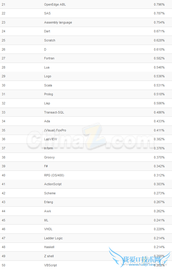 排名TOP 21 - TOP 50的编程语言: