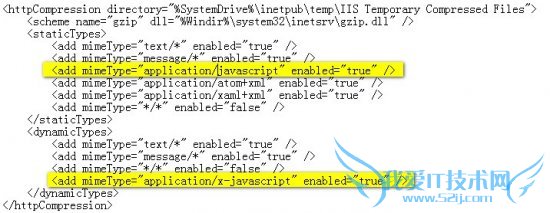 然后对application/x-javascript进行动态压缩,对application/javascript进行静态压缩,需要配置C:\Windows\System32\inetsrv\config\applicationHost.config,如下图3