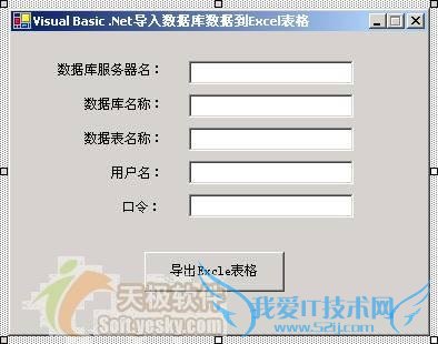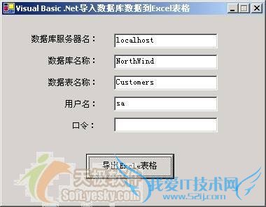 以上就是Visual Basic .Net一些基本的操作方法,其他处理Excel表格的方法还有许多,但都和上面的这些方法很类似,由于篇幅所限就不一一介绍了,相信再掌握上面这些方法后,掌握它们也不会很困难。下面就来介绍一个比较实用的示例,这个示例的实现过程主要是通过上面介绍的这些基本的操作方法,此示例的功能是把Sql Server数据库中数据表的内容导入到Excel表格中。