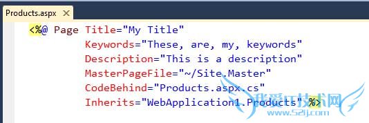 除了在后台代码中用编程手法设置Keywords 和 Description属性外,你现在还可以在.aspx网页顶部的@Page指令中用声明的方式设置它们。下面的代码片段示范该怎么做: