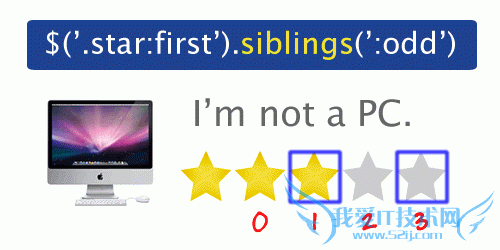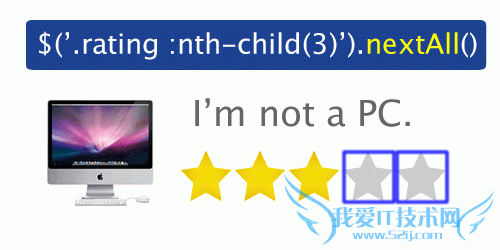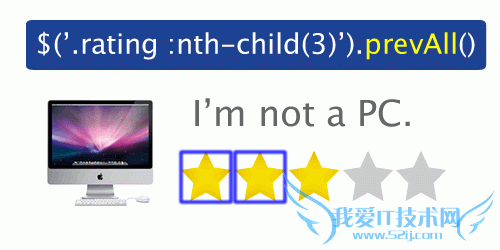 在第二行,我们得到了我们点击的当前对象。但是,如 何得到stars的父级?即div.rating。但是,在一个页面中,有很多div.rating。哪一个是我们想要的?如何获得“this”左边所有的star?