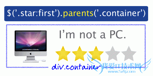 通过给parents()传 递.container参数,div.container将被选中,它实际上第一个star的祖父。