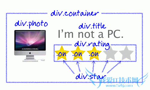 好,让我们从示例开始。在上面提到的网页中,当一个star被 点击时,我们需要给它以及左边的每个star添加class“on”。与此同时,我们要改变所有star父元素的背景颜色,因此,我们的代码如下: