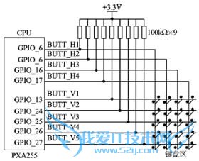 随着现代科技日新月异的发展,作为新兴产业的嵌入式移动信息设备的应用越来越广。这些嵌入式设备中的PDA以其体积小、重量轻、便于携带、功能强大、功耗低等特点而备受青睐。键盘作为一种最为普通的输入工具在PDA上显得尤为重要。PDA因其体积小、功能专一等特点决定了它的键盘不大可能采用普通PC机上的标准键盘,因而大多数PDA采用键数相对较少的矩阵键盘。矩阵键盘设计也是多种多样,有外接键盘管理芯片设计的,如采用CH452、UR5HCSPI等芯片;有外接普通单片机设计的,如采用8051、2051等单片机;也有不采用任何外围芯片直接与CPU的I/O口相连设计的。本文介绍一种在Windows CE.Net操作系统下,直接与CPU的I/O口相连的矩阵键盘的硬件设计方案,以及相应的流接口驱动程序设计方案。