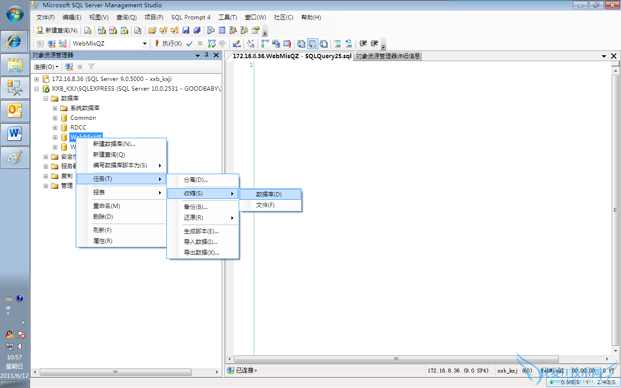 6. 建数据库的时候我们需要注意,我们数据文件放在磁盘的格式fat32的允许数据库文件最大为2g如果我们建立好数据库后再发现这个问题就麻烦了,要不停的加数据库文件,所以建议放在NTFs格式磁盘上,数据库最大容量修改规则,能改大不能该小,那么有没有把数据库改小的办法呢?有的压缩数据库。