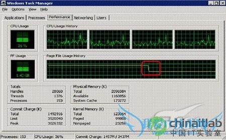 检查Server的内存使用率时,发现超过了2.5G;在关掉了这只程式后,它就降到了1.5G…下面的图片为证: